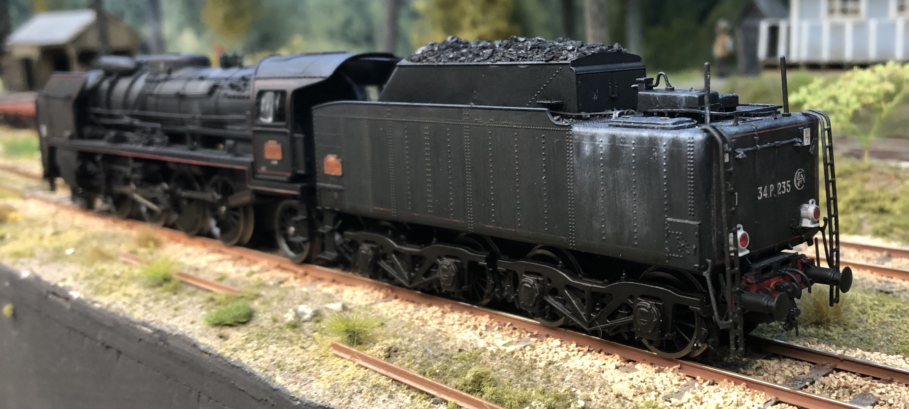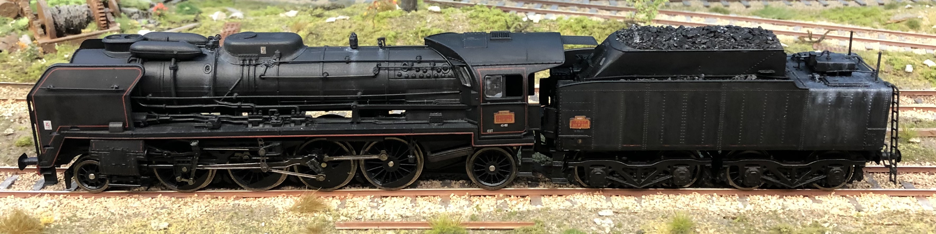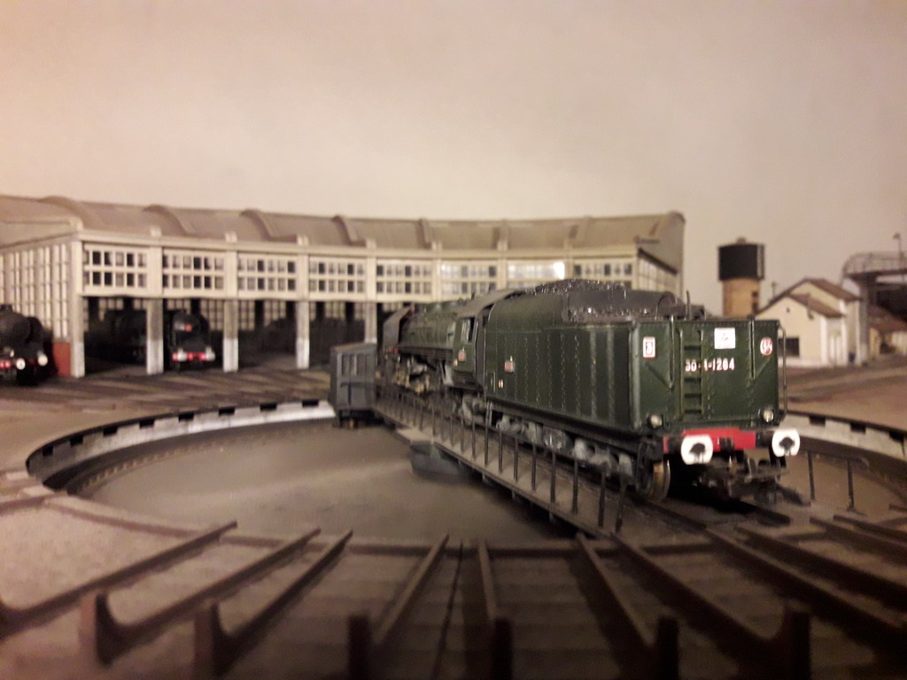 Belle patine pour la petite P. La mienne est de 1973 revisitée, dont un train de roue et embiellage récent, avec son 36P remotorisée IProd'. Patine uniquement avec de la terre à décor sauf peinture des bielles et roues. La P102 est d'Argentan avec une livrée habituelle de ce dépôt. Ces machines conduites en double équipe sur la ligne de Granville étaient assez bien entretenues.