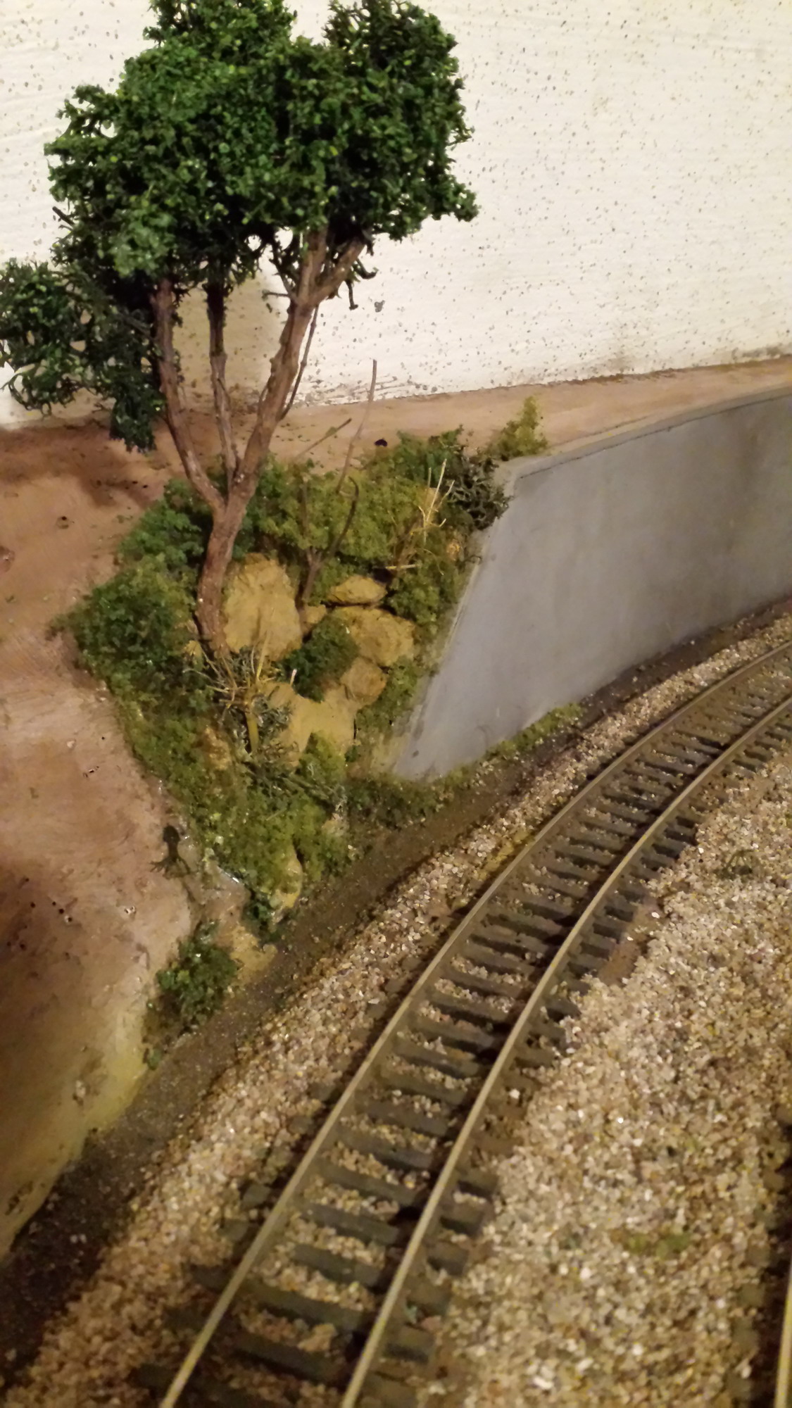 Les photos sont impitoyables. Evidemment il y aura de la reprise. La mise en œuvre est assez propre. J'attend le résultat pour continuer cette méthode. Comme le talus est au premier plan, je n'ai pas intérêt à rater la végétation et les aménagements (poteaux télégraphiques?). Le sémaphore sera constamment ouvert et équipé d'une diode verte, car il n'aura pas d'action sur la marche des trains contrairement aux autres signaux mécaniques. A suivre