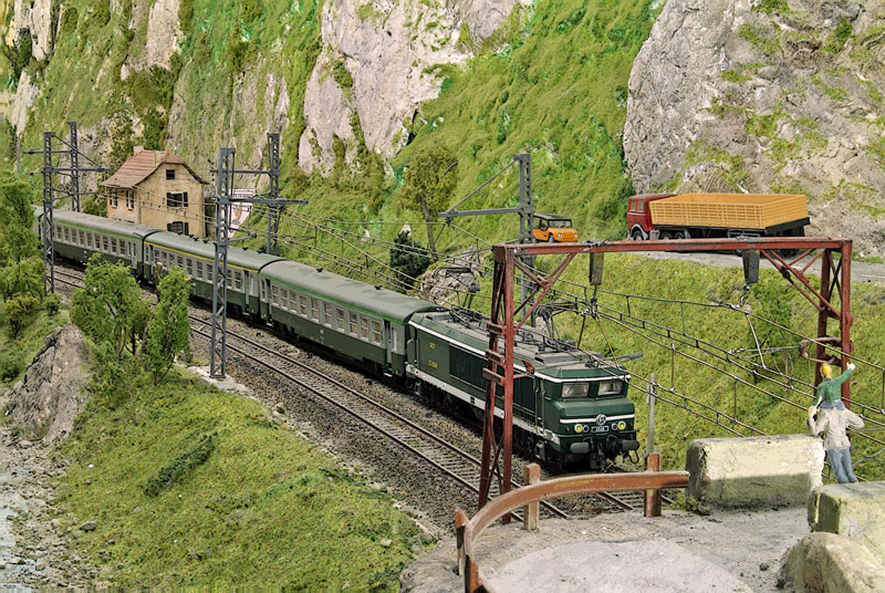 c'est vrai ça rend bien cette courbe même mieux en vidéo que de visu pourtant ce n'est que 120 de rayon pendant un moment je me demandais si je n'allais pas démonter pour refaire cette courbe en plus large et modifier la première bifurcation pour commencer la courbe plus vers le mur de manière a augmenter le rayon. Par contre avec la vidéo je m’aperçois qu'il y a un trou (ou une bosse) il va falloir rectifier cela