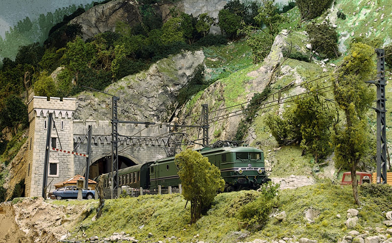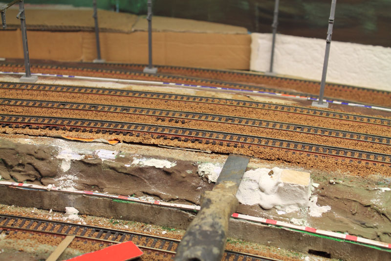 il y a un trou sur les deux premières voies je vais mouiller pour décoller la semelle en liège avec un couteau à mastic et mettre a niveau en calant. la sortie du tunnel c'est le raccord entre deux modules celui devant la cheminée étant amovible en cas de travaux, là c'est pas facile de faire quelque chose. les bébé et la maman vont bien ! dans deux mois et demis 7 chatons à donner ......