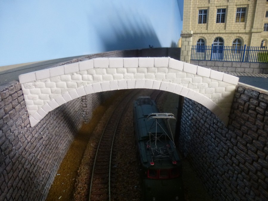 j'ai fabriqué un petit pont de pierre après plusieurs essais, j'ai choisis le carton plume