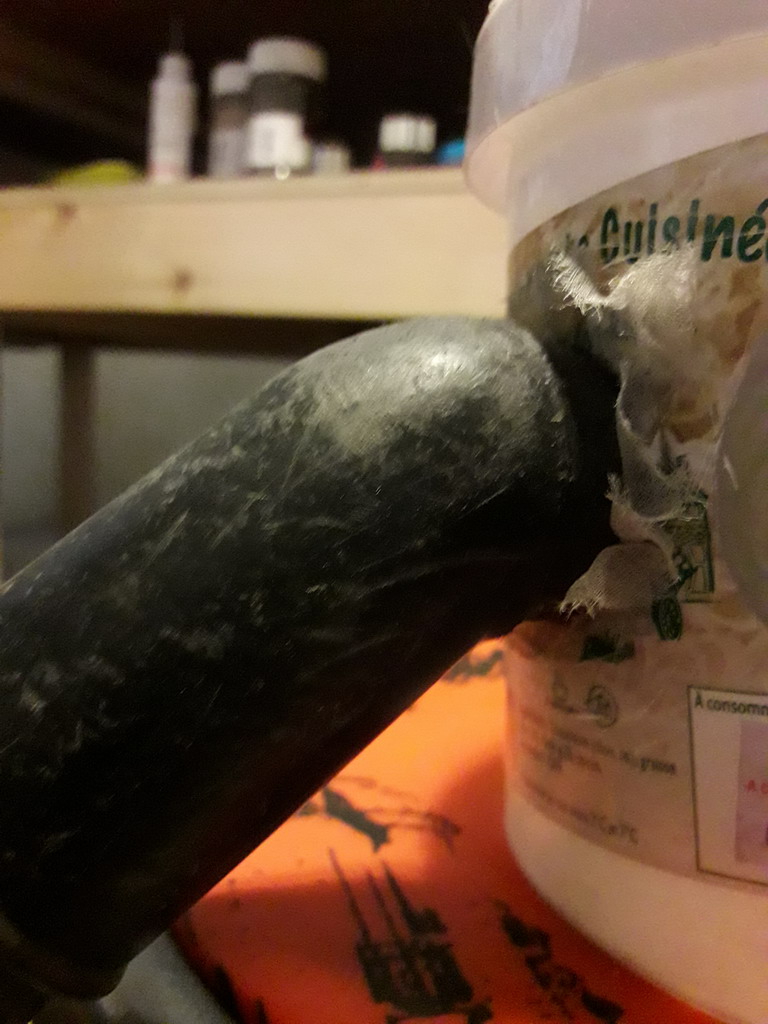 En attendant un wagon aspirateur, j'ai rebricolé l'aspirateur avec un pot en plastique (Choucroute de chez WEBER