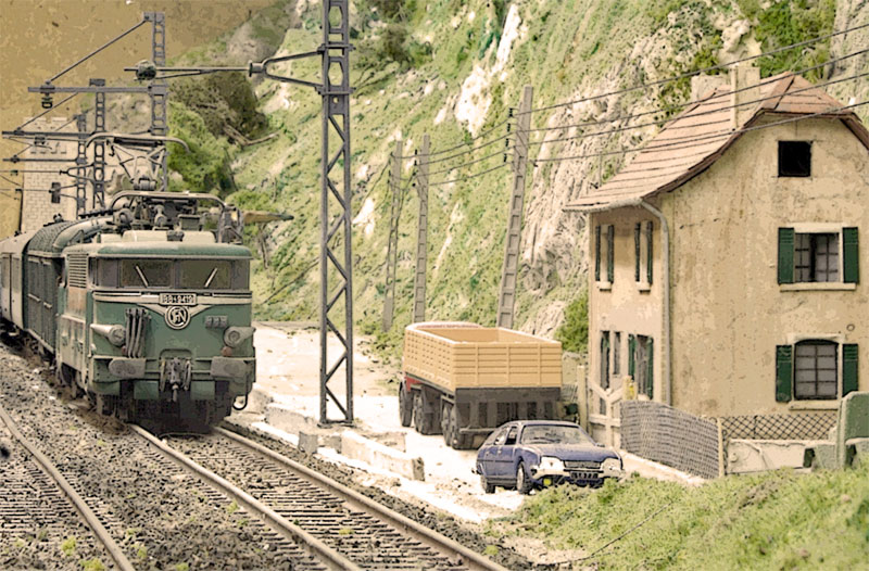 je vais continuer de poser les arbres devant le mur et sur la butte de l"autre coté. Vu le bel été que l'on a pour l'instant je ne sort pas mes voitures, de toute façon la liberté ne durera pas donc elles resteront encore cette année au garage.