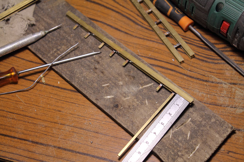 Remplacement de certains poteaux à l'entrée de la gare de Mézi, les poteaux JV se faisant rares je récupére certains pour les replacer autre part et je vais fabriquer deux ou trois portiques. Je les trouve plus imposants que de simples poteaux convenant mieux pour une entrée de gare. Il reste encore quelques pièces à souder pour les finir.