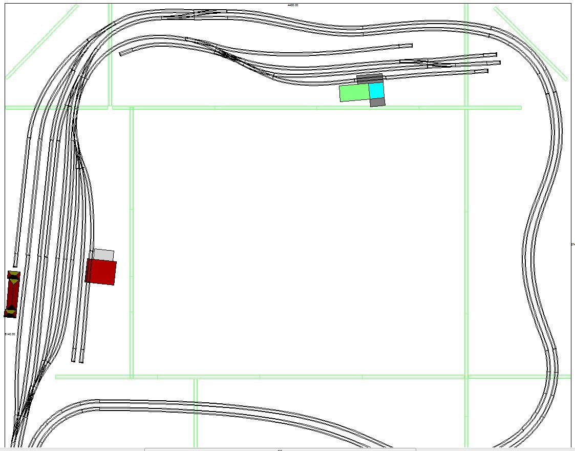 Et pour avancer dans le TCO sous Train Controller, j'ai fait joujou avec Raily ce matin pour réaliser le plan de voies de l'étage supérieur. Celui qui contiendra la gare et l'ITE céréales