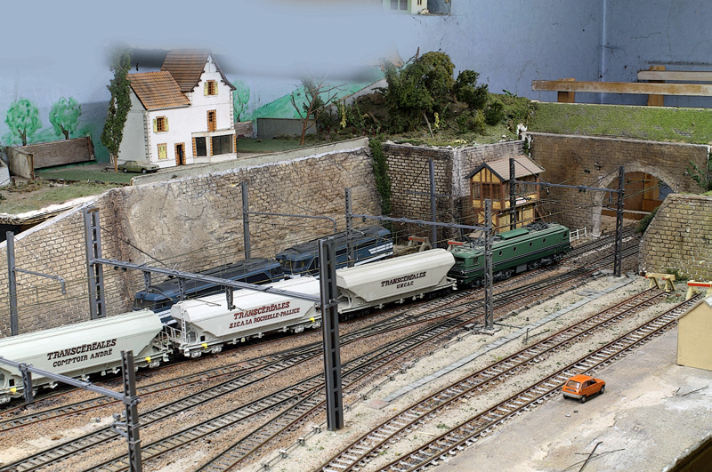 Il est 16h35, le train numéro ......('je n'ai pas mes tableaux horaires sous la main) en provenance de Hauffon sur la voie unique non électrifiée vient d'arriver en gare voie 6. C'est un train de céréalier plein, 22 véhicules, 1823 tonnes, 378 mètres. l'UM de 67400 va être coupée pour laisser place à une machine électrique qui l’emmènera à Laroche Kigennes. Pendant ce temps sur voie 2 un train sans arrêt passe Mézi 26023 en tête.