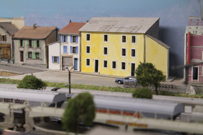 . vite , si on veut, moi ça me parais lent, Découper des petits bouts de cartons de telle épaisseur, coller des petits bouts de papier dessus pour faire un petit relief qui se voit que le nez dessus........ Une chose est sure il n'y aura pas d’aménagement intérieur, rideau aux fenêtres (qui sont encore a imprimer et a découper) pas plus. Quand j'aurais fini mes petits collages sur les façades il restera encore les descentes pluviales a faire. Le plus dur c'est l'inspiration pour les façades, les vitrines, heureusement lorsque je suis en panne je vais prendre ma dose à Soumagnac ça fait du bien !