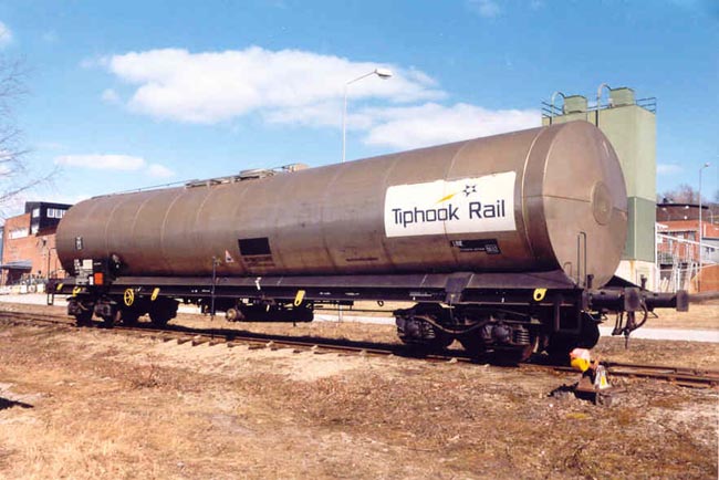 ces citernes sont blanches, transportent de l'essence et sont marquées TIPHOOK RAIL, immatriculées à la SNCF