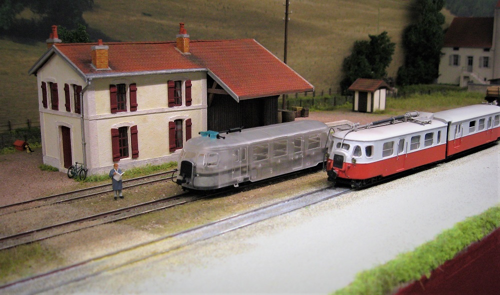 Commençons par la reine du bal, une draisine 2 CV (HO) motorisée et digitalisée par deux doux dingues Gilbert et Claude, et son copain le chasse-neige (construction de Gilbert):