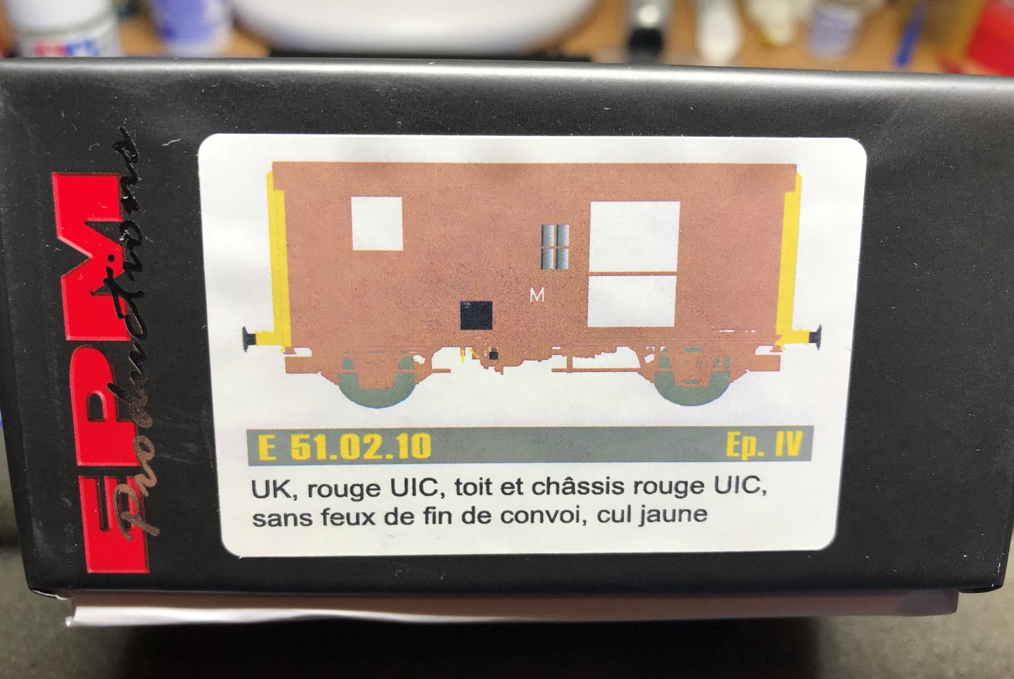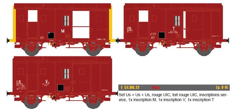 L'ancien coffret portait le n° 51.00.04 , j'ose espérer les wagons du nouveau coffret portent un numéro différent. Le fourgon "M" devrait être décoré d'arêtes jaunes , ce qui par définition, le limite à un trajet pré défini entre deux ateliers du Matériel.