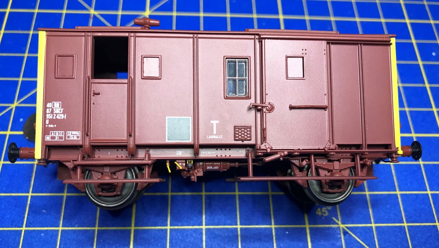 Quant au fourgon (réf E51.00.10) , le fourgon est marqué "T" au lieu de "M" et a a les arêtes jaunes, donc ce n'est pas un cul jaune. J'ai donné les définitions dans un message précédent. Ce marquage "T" est étonnant car il 'y pas d'indication à priori du trajet autorisé. il est affecté à la gare de Lamballe.