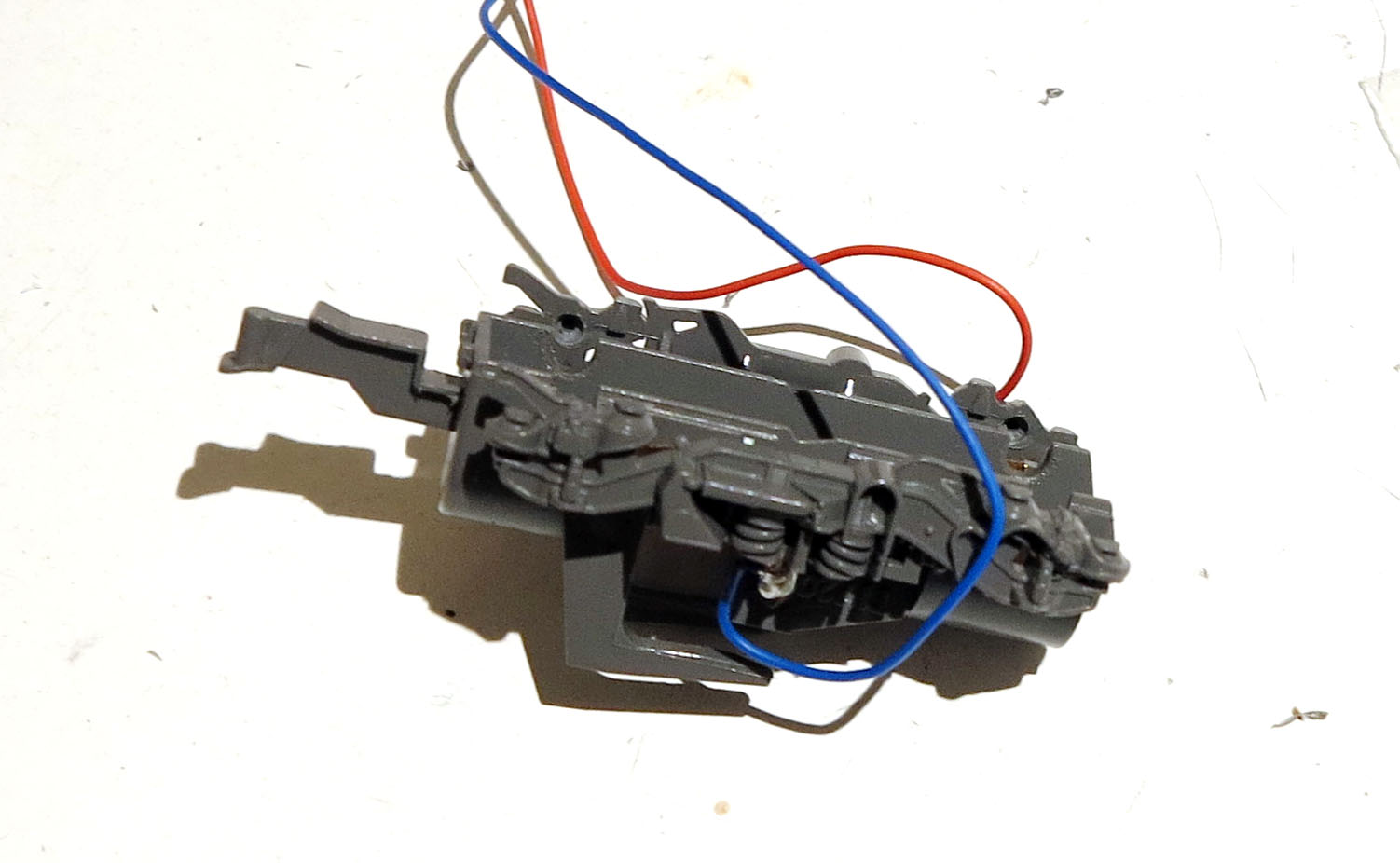 J'ai repris les bogies de la fausse motrice qui roule très mal d'origine. Pour supprimer les frottements, j'ai percé les flancs à la main au foret de 1 mm puis 2 mm, pour placer des cuvettes en laiton. Percer à la bonne profondeur !