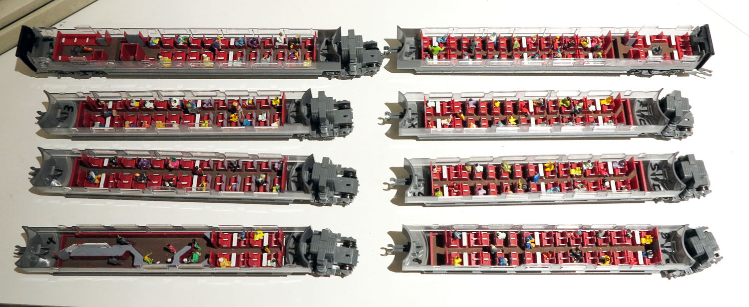 J'ai déjà peint les voitures, placé des personnages et ajouté l'éclairage dans les 8 voitures.