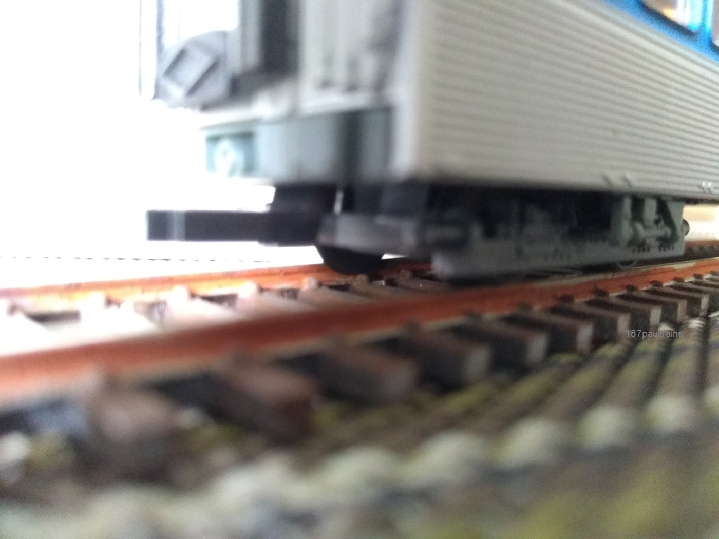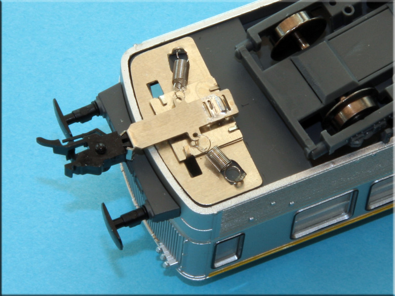 Après la motrice à traiter (changement notamment des essieux) et puis les détails extérieurs comme les câblots et les attelages Scharfenberg d'origine Mecanic Trains à ajouter.