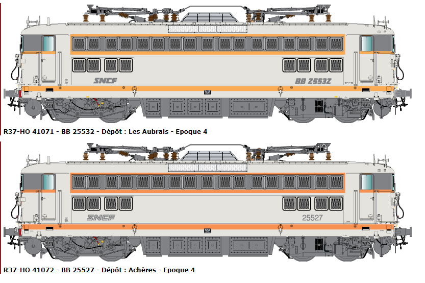 Oui Cbr-reims, mais j'aimerais une production de REE, R37 ou LS Models. Je trouve ma 25603 de Rivarossi un peu vieillote (et pas de son). Je l'aime, mais si un des 3 mentionnés en sortaient une, ça irait bien avec ma rame RIO (RIO je crois) PACA (vieillote aussi...). Mais ça, c'est un autre sujet. Je vais me remettre "au SCNF", mais pas avant la finition de mon module de gare (sud du Québec, années 30-40).