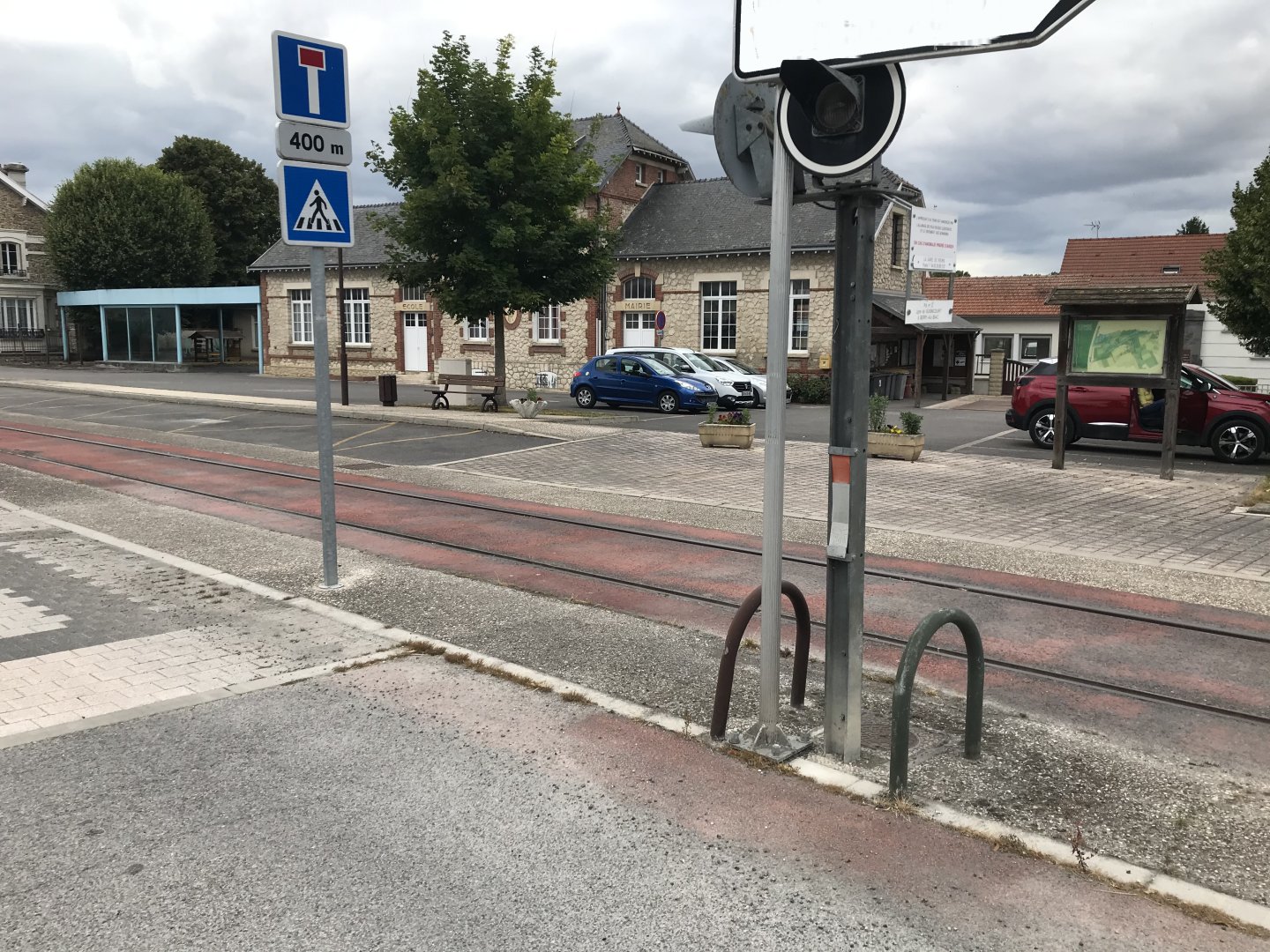 A Condé, le village est à droite de la voie coté mairie, école mais aussi église et cimetière.