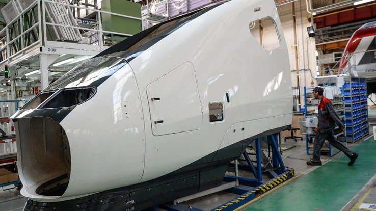 Quatre ans après le lancement du projet, le premier "chaudron", soit l'enveloppe extérieure du train, a été présenté jeudi dans les ateliers d'Alstom à la Rochelle, une première pierre qui doit mener ce projet à la mise en circulation d'ici quatre ans.