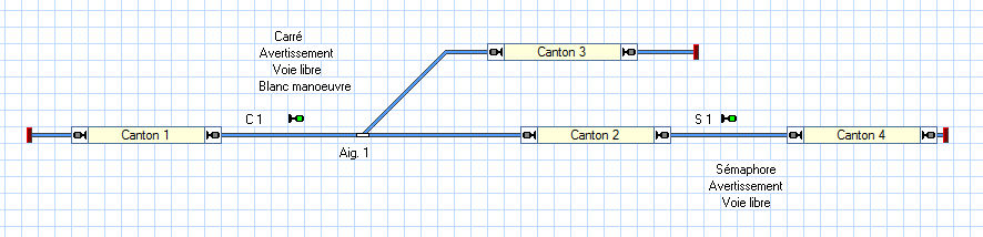 A) Je déplace la loco bleue pour aller en Canton 3, le C1 passe blanc et ensuite passe rouge puisque Canton 3 est occupé