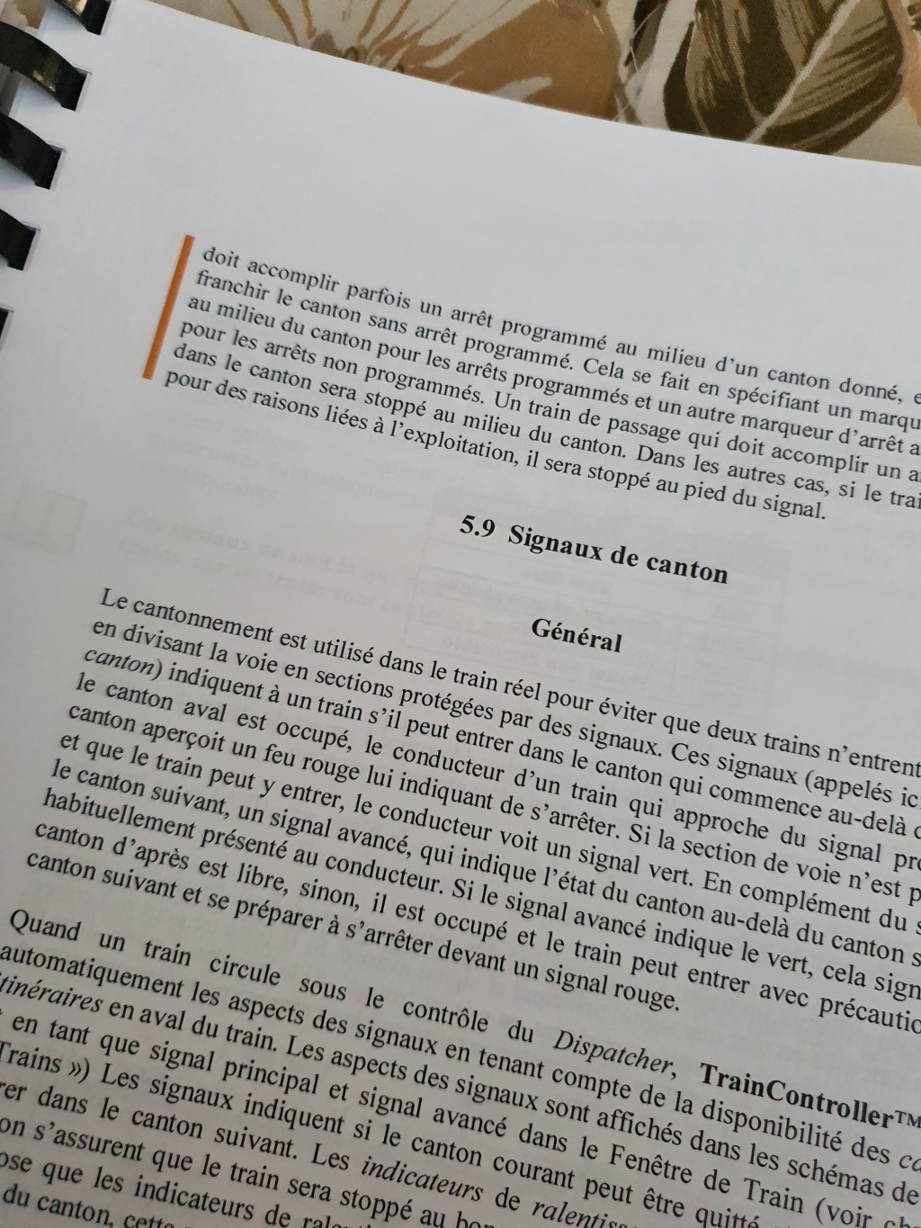 Merci pour ton dévouement et tes photos. J'ai bien ce document pour la V8. Il est parfait mais il n'explique que la théorie de la signalisation. Je maîtrise parfaitement le sujet car j'ai fait ma carrière en tant que conducteur SNCF, au TGV en particulier ! Mais le document n'explique en aucune manière comment programmer RRTC et en particulier que mettre dans les déclencheurs, les conditions, que mettre en fonction des trajets, des directions, etc...!