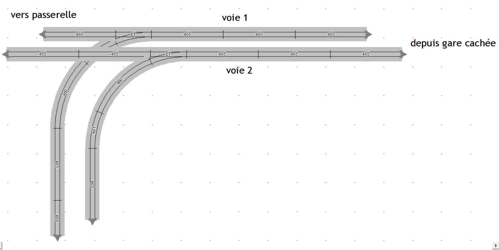 Pour agrandir mon réseau, je réfléchis a une passerelle, mais la voie 2 venant de la droite doit croiser la voie 1 venant de la gauche. je suis en rail JOUEF d'un autre siècle.